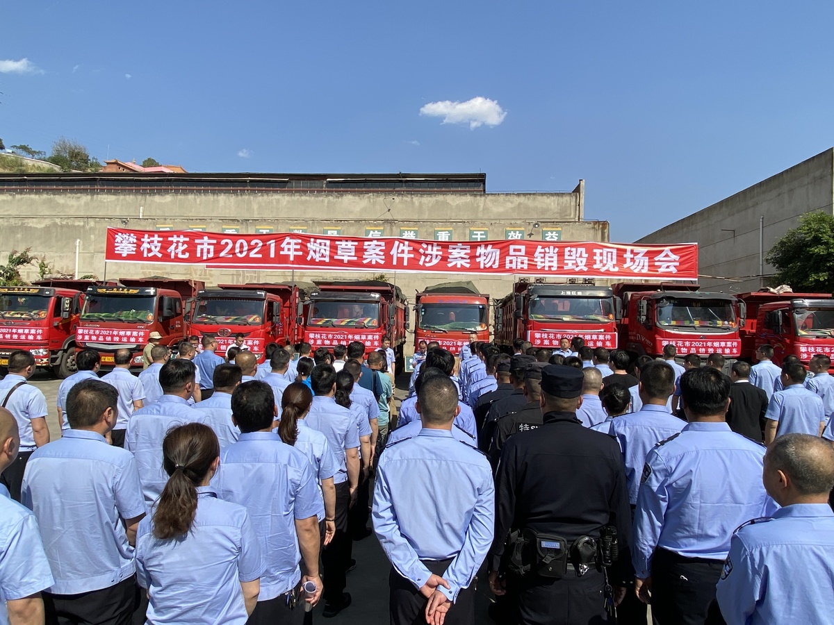 3月15日,国际消费者权益日当天,攀枝花市举行2021年烟草案件涉案物品销毁现场会,采用无害化处理方式,依法集中销毁近4年罚没的涉案烟草专卖品,涉案案值达2000余万元。