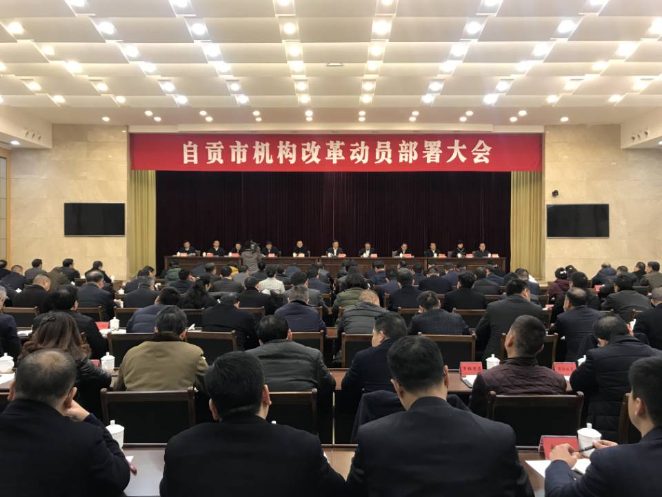 2月18日,自贡召开全市机构改革动员部署大会,正式公布《自贡市机构改革方案》。按照该方案,自贡设置了13个党委机构、34个政府机构共计47个党政机构,其中包括自贡市政务服务和数字化管理局、市口岸与物流办公室等9个因地制宜设置的机构。