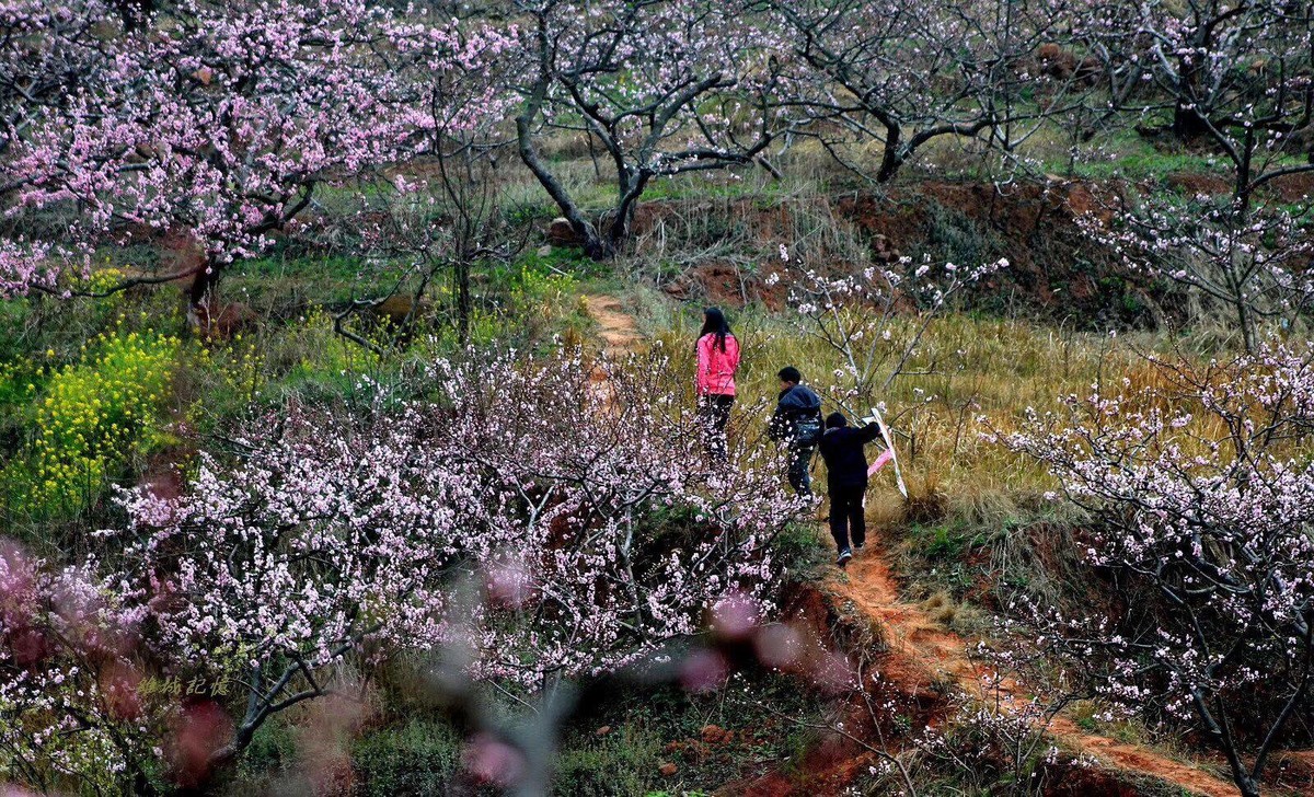 “来松林看桃花,是我每年春天都会和家人一起参加的郊外赏花踏青活动,这里风景如画,空气清新,令人心旷神怡。”来自成都的游客雷玥笑着说:“除了粉红的桃花,还有雪白的梨花,金黄的油菜花,这些都是春天的颜色,我们一家人在花丛中留影,就是最好的回忆。”