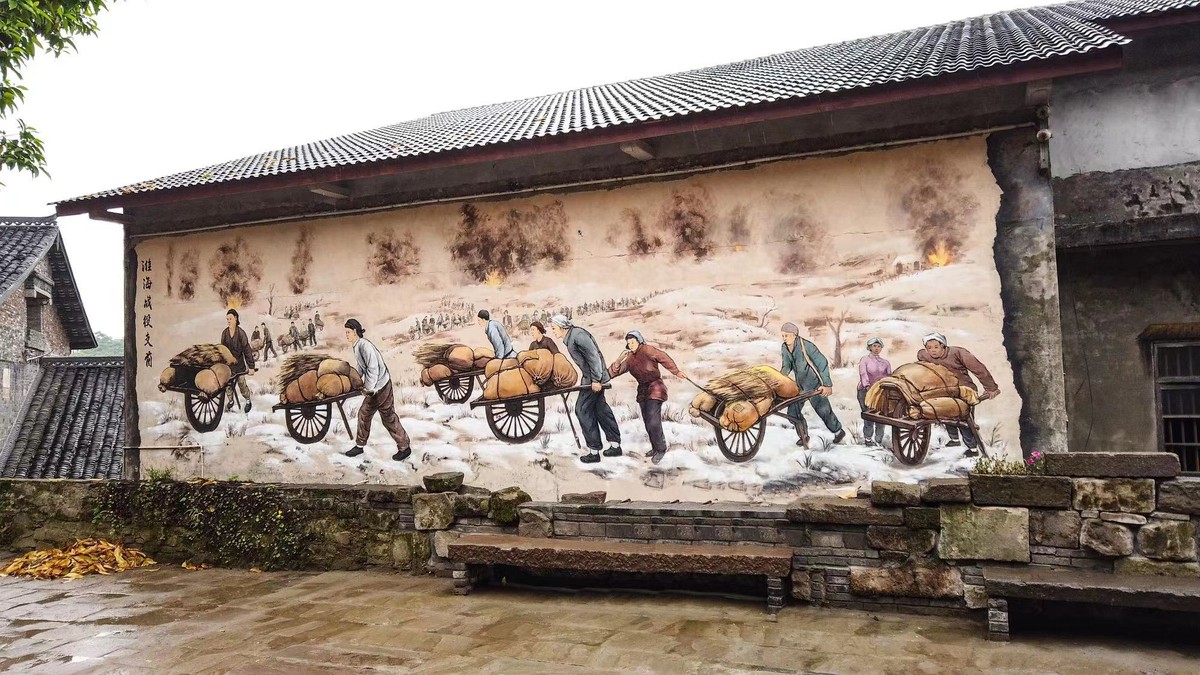 这个隐于村院的“红色地标“有哪些看头?记者探访发现,展陈馆不大,为两层土瓦房。据讲解员介绍,毕占云儿时曾和伯母在附近生活,这栋瓦房在他少年时代就存在,且也是该村唯一一栋保存至今还如此完整的房屋。站在展陈馆的院子里,向四周望去,与其并排的农舍墙面绘着彩色的图画,每幅都展示了毕占云生前的一件事迹。画围着院子,形成一个整体。此外,院落左侧修了一个花坛,中间是毕占云的塑像和一块石碑。
