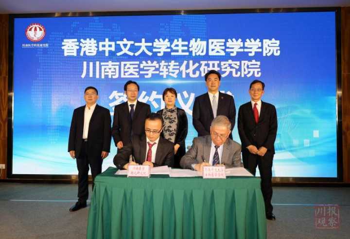 原来,揭牌仪式上,川南医学转化研究院院长肖占刚与香港中文大学副校长、生物医学院院长陈伟仪正式签订一份框架协议,双方将联合成立实验室,引进香港中文大学可转化的先进技术和产品,在2至3年内在川南地区建立一套完善的、国际领先的肿瘤免疫治疗体系,将推动西南地区现代生物医药产业发展。