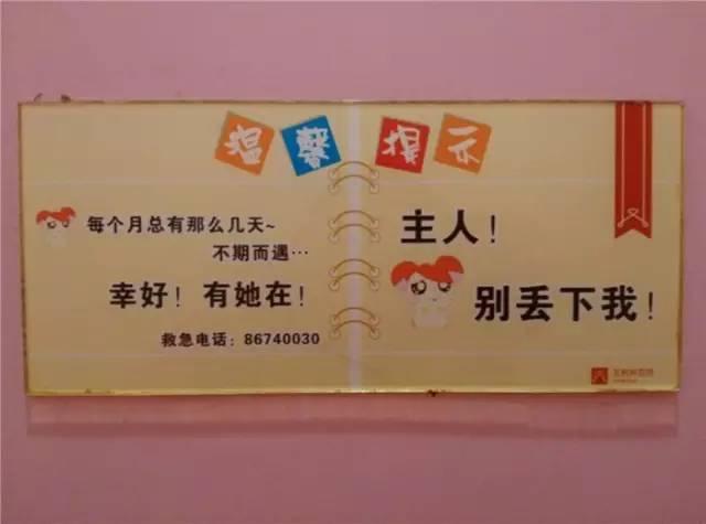 在门后还有防滑标志、禁止体验等提示,而最特别的当属一块粉色的牌子上的服务,这对大姨妈突然造访的逛街女性最贴心的服务。