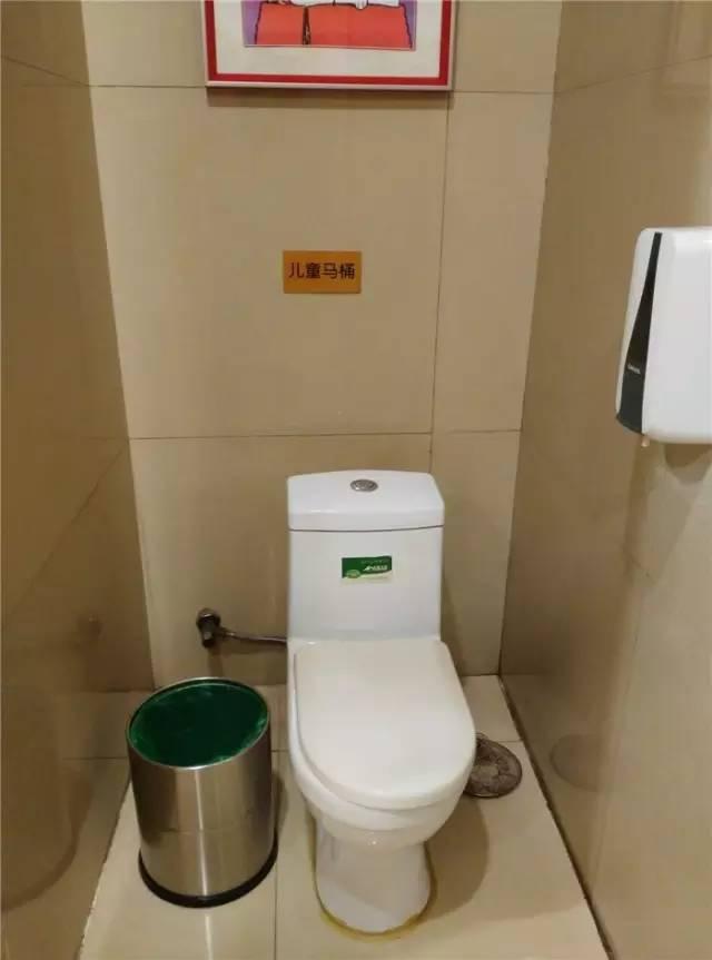 还设有专门的儿童厕所,内有两个儿童马桶和一个安全座椅。