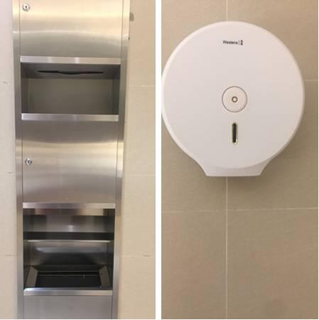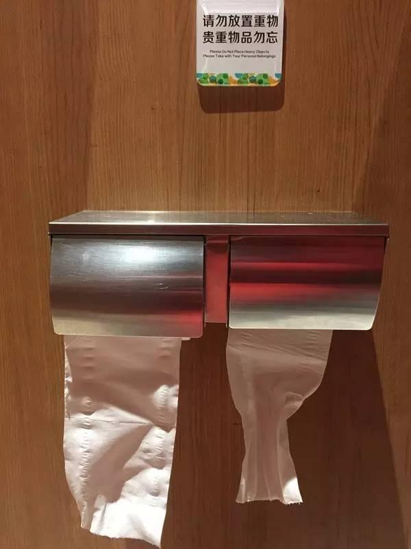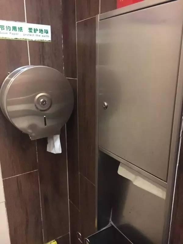 如厕用纸和擦手纸一样,均设置在格子间外,每个单独的格子间里不再有纸巾。