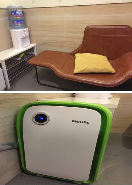 在母婴室的角落还有一个皮质的沙发,以及一台暖气机,宝宝在这里换尿不湿,或是喝奶也不怕着凉了。可以说,这家商场的母婴室还是很贴心。