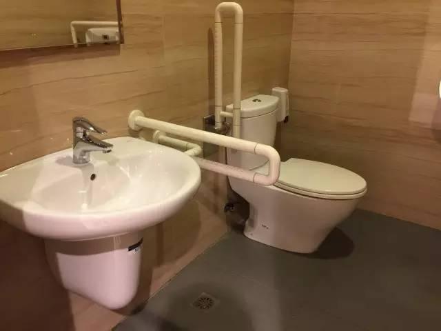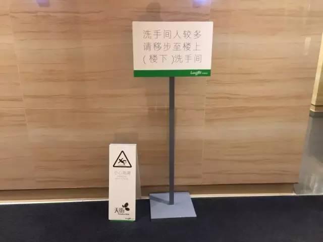 此外,商场还设有残障人士专用厕所,与市民们常用厕所相比,这里多了安装了不少扶手,也方便多了。随后,花花又去常用卫生间探究竟,老远就看到了设在卫生间门口防滑标志,同时,还有一块疏导的标识牌。