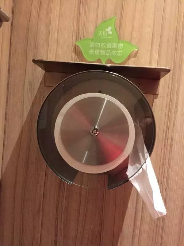 龙湖金楠天街商场每个厕所隔间都配备有厕纸,此外,在厕纸上面还有一个小的提示牌,提醒贵重物品记得带走。