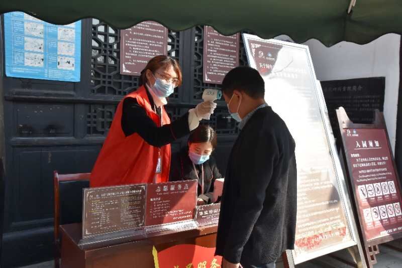 从上午 9:00开始, 阆中古城景区汉桓侯祠、中天楼、文庙、川北道署、贡院、华光楼6个景点有序恢复开放,参观景点必须经过实名登记和体温检测等程序。因为是首日,游客不算多,但井然有序。