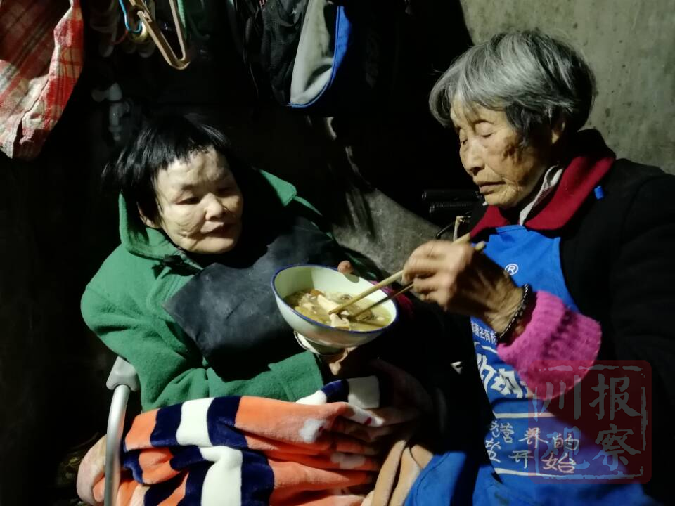 “老伴被三个儿子接去,每人轮流赡养四个月。但她(指二女儿郑素群)怎么办?其他子女们都拖家带口,谁能长期照顾她嘛。没有钱请护理,只有我来啊。”蒋贵英说得很无奈,但也平静。
