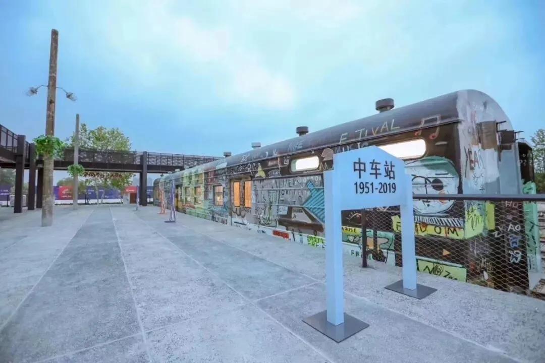 机车厂站毗邻中车·共享城,出站即可领略浓浓的工业风,旧时的厂房和生锈的铁轨讲述着“过去的故事”,绿皮车厢经过涂鸦成了游人拍照的“宠儿”。