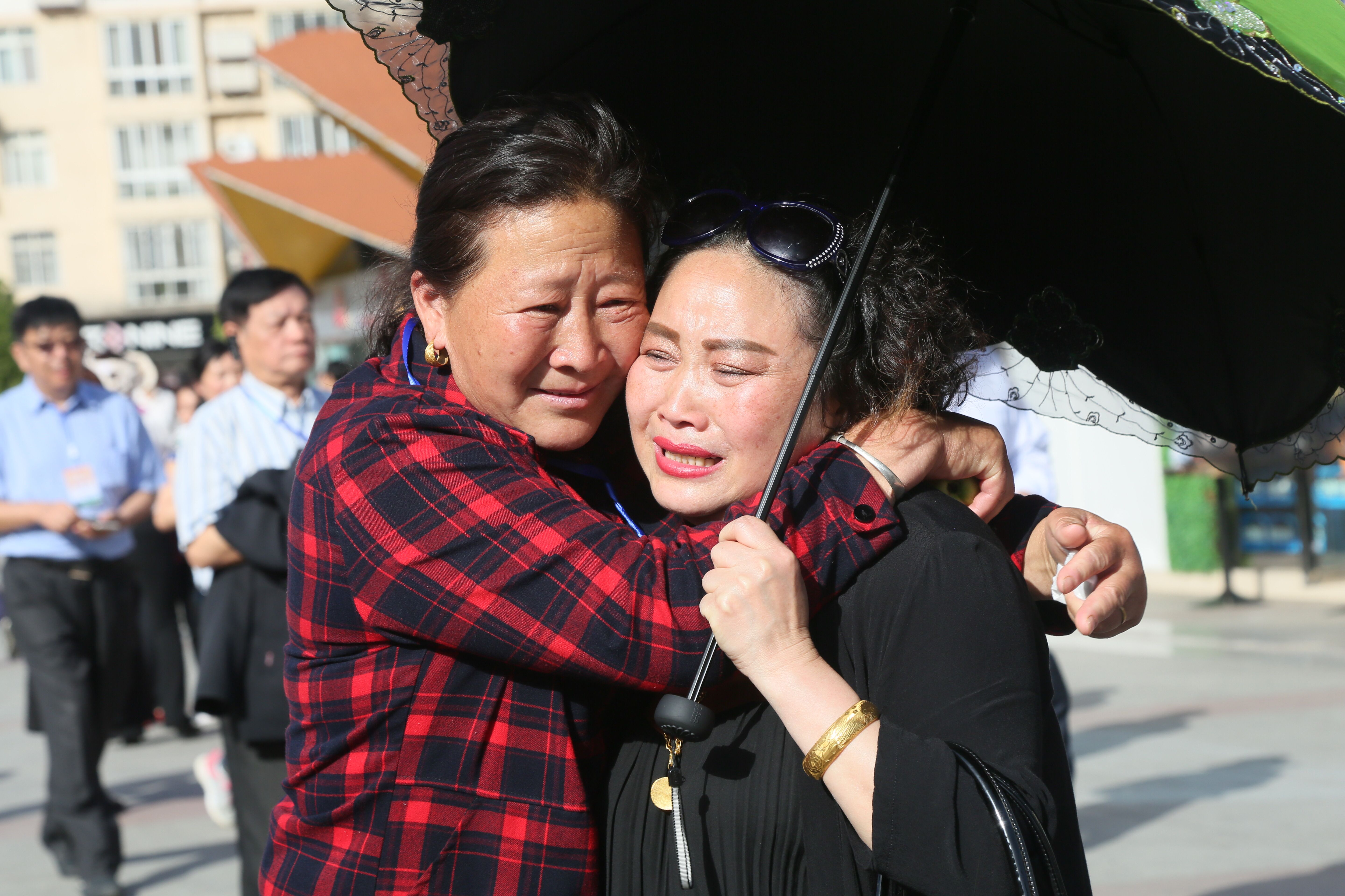 援建恩人与灾区群众相拥而泣。高志龙/摄