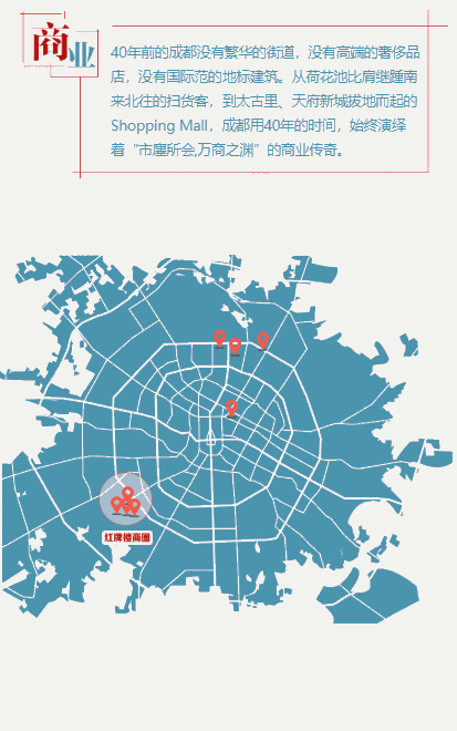 记者陆续走访成都市档案馆、成都地图出版社、四川省机场集团、成都轨道交通集团有限公司、成都市勘察测绘研究院等单位,获得大量珍贵的数字、图片、历史资料等独家数据,再结合海量网络数据进行调研分析,从商业、交通、产业、对外开放、文化、科技六大方面,回溯改革开放40年以来成都城市发展中可知可感的典型事件,旨在找寻老成都的“共同记忆”的同时,见证这座城市“敢为人先”的创新创造精神和发展奇迹。