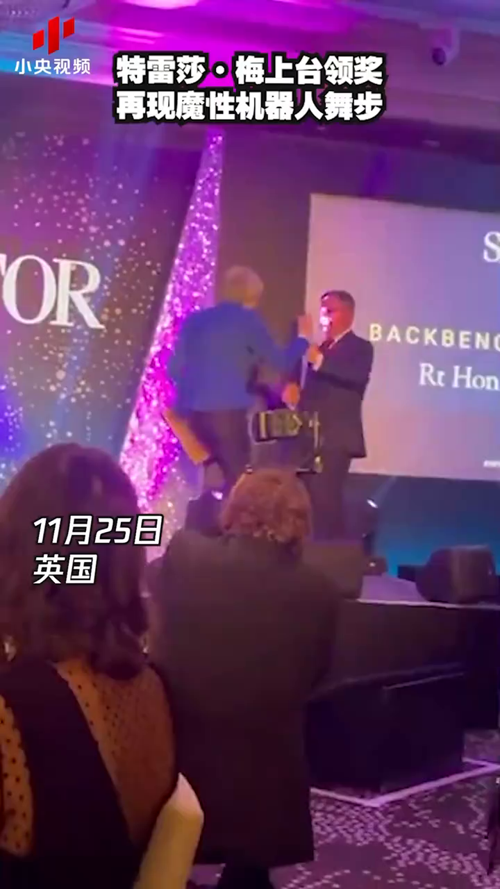 特雷莎·梅上台领奖 再现魔性机器人舞步