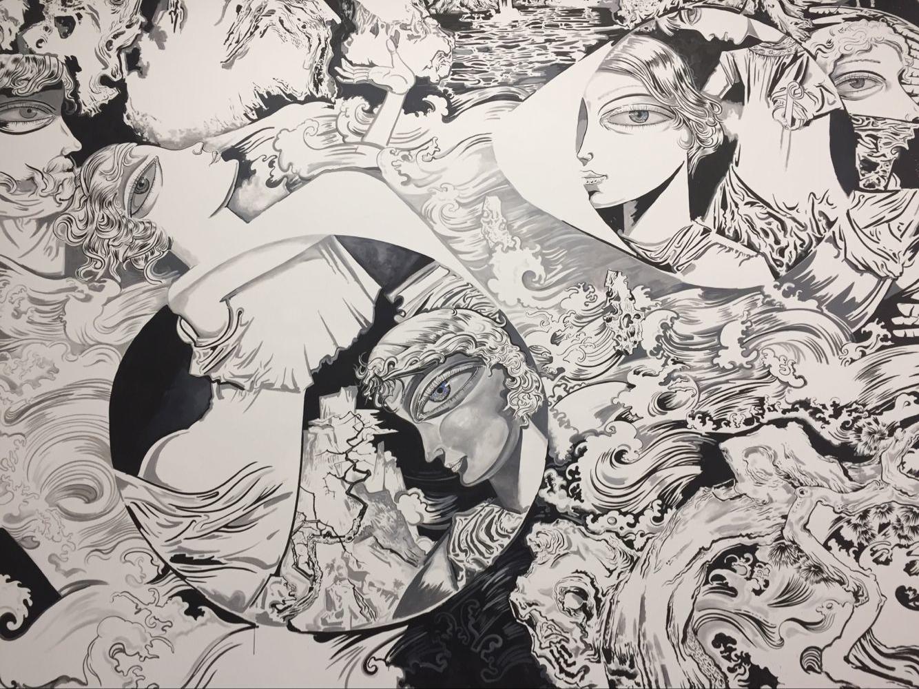 艺术家熊宇新展亮相成都千高原 “不打草稿”创作巨幅黑白墙绘