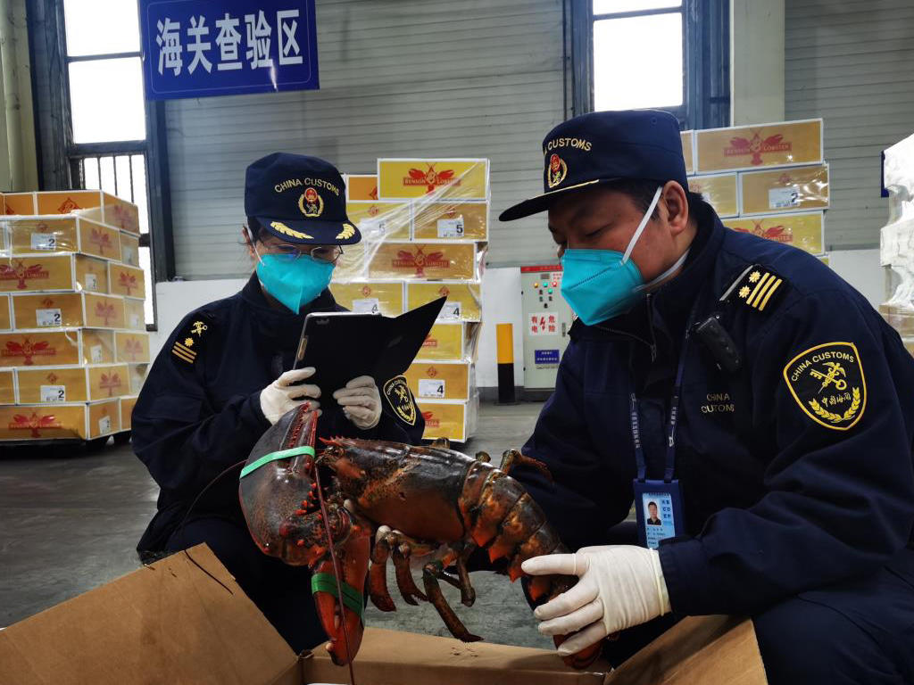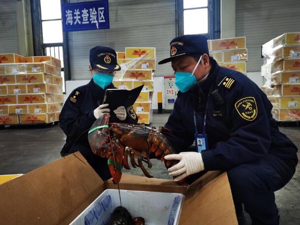 大西洋龙虾“飞”抵成都,成都口岸迎来今年首次进口海鲜类产品