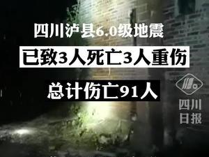 最新通报!四川泸县6级地震 已致3人死亡3人重伤,总计伤亡91人!