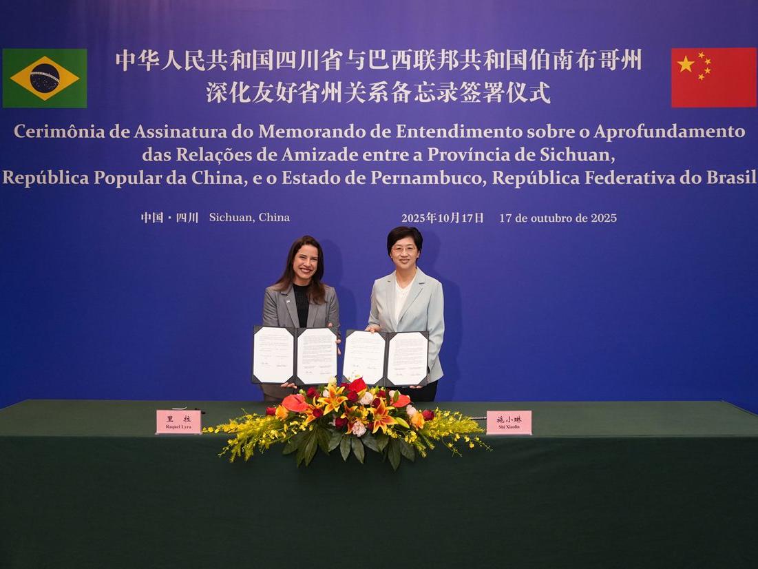 四川与巴西伯南布哥州签署深化友好省州关系备忘录 施小琳会见里拉并分别代表双方签约