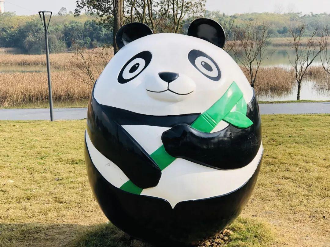 公园里有好多好多熊猫景观啊,有草塑形的熊猫造型,也有熊猫玩偶塑像,小朋友们,快让爸爸妈妈们带你们来公园找熊猫吧!