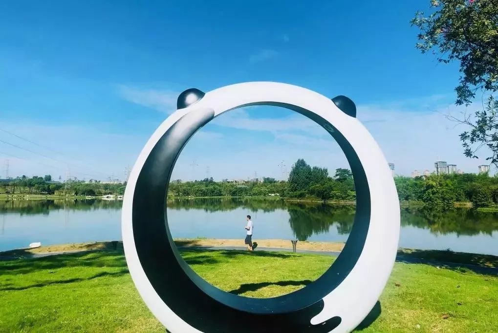 在湖边的一个小丘上,我们能看到一个环状的熊猫,大家可以通过这个环状熊猫拍出一系列有趣的照片。