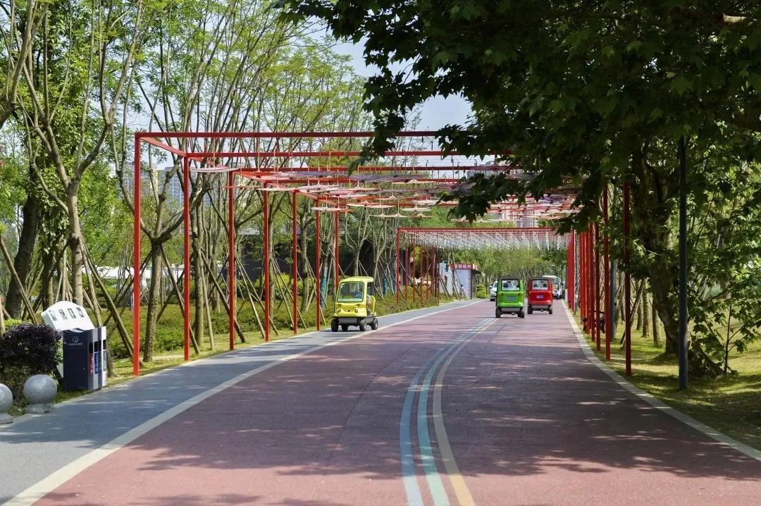 骑行的过程中,我们能更加详细地了解这座公园。这里有独山古梅、望湖广场、精品芙蓉园、阅湖长廊等多个特色景点,坐在电动车上,耳旁的风吹过,深呼吸一下,纯净的空气让人神清气爽。
