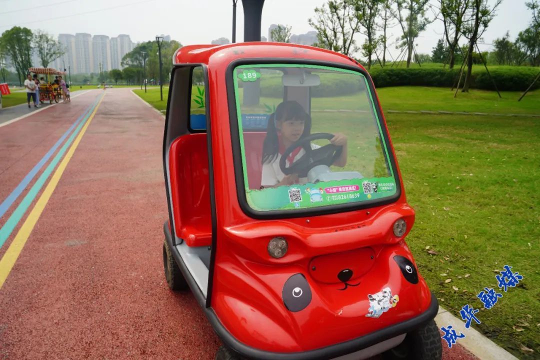 除了萌萌哒的熊猫雕塑,公园里还有很多很多新玩法,接下来,就带大家坐坐公园内的迷你电动车,一起来看看北湖全貌吧~