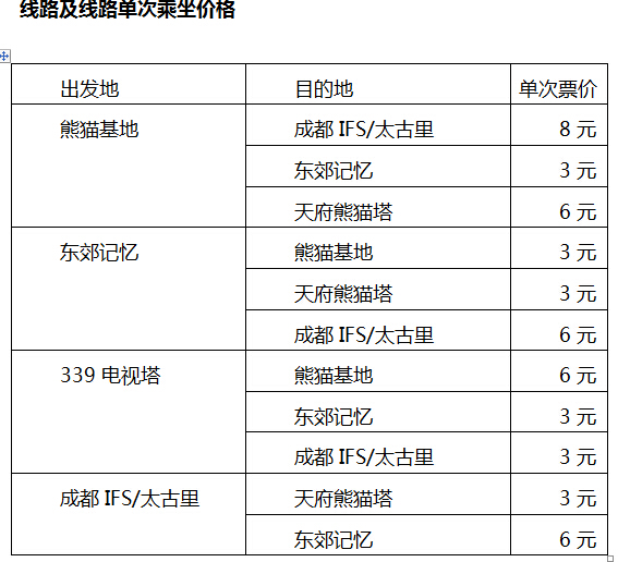 据了解,成华区联合成都文景智旅有限公司等打造的精品旅游专线设有熊猫基地-东郊记忆-成都339(天府熊猫塔)-成都IFS/太古里4个站点,运营时间为11:00-18:00,每30分钟/班。全程通票8元,购买通票的游客可在两个自然日内,无限次乘坐景区直通车。