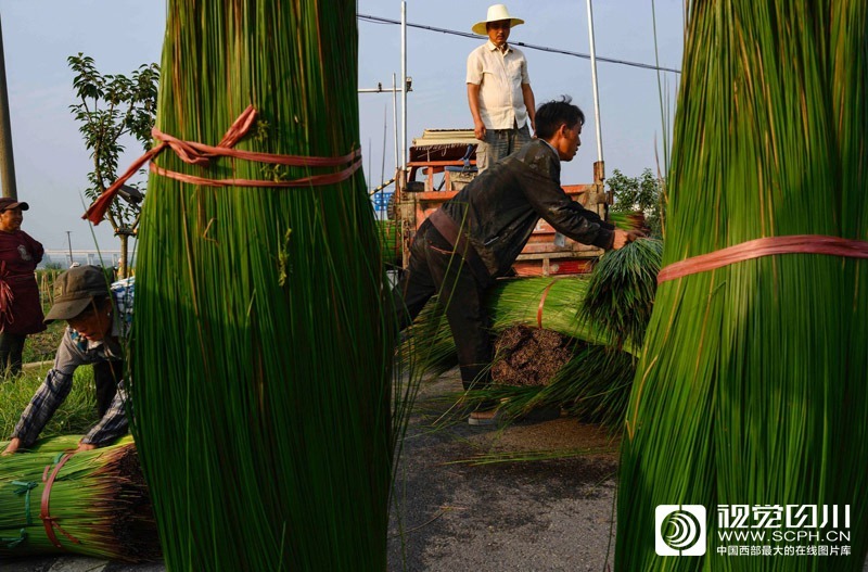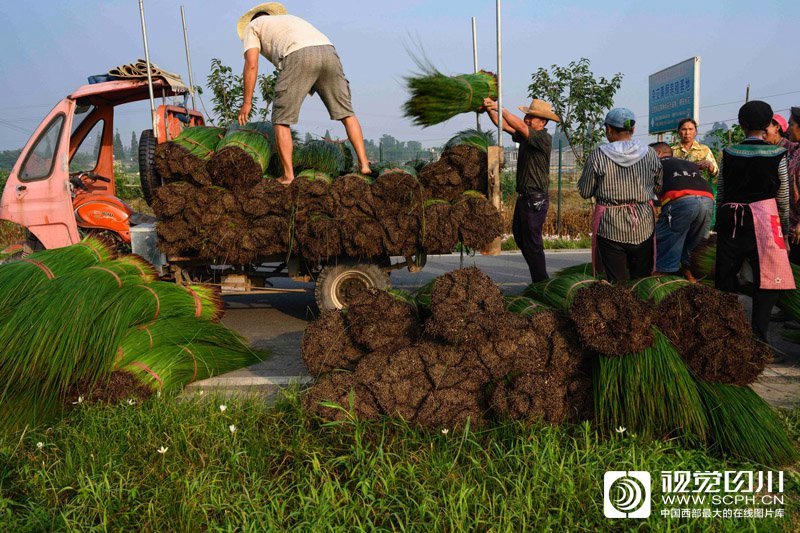 “小暑割草,大暑割稻”。又到了蔺草收割时节。7月1日晨,旭日初升的温柔光线下和凉爽气温中,在眉山市东坡区悦兴镇蔺草田里,来自凉山州、攀枝花市的农民工挥镰、割草、除杂、打捆、搬运、过称、装车,一派农耕收获的田园风景。