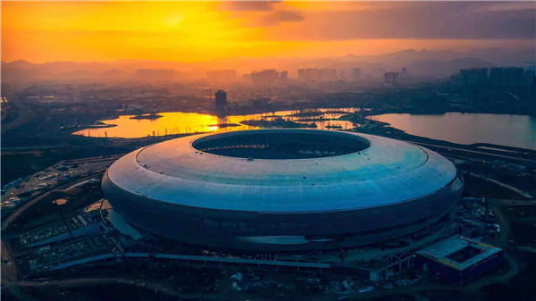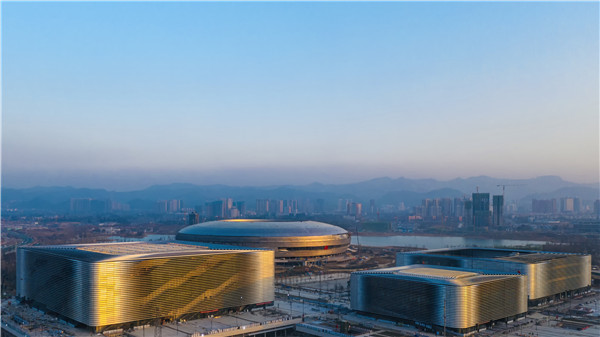 两年来,东安新城一天天加速长成:东安湖体育公园“一场三馆”建筑形态呈现,主体全面封顶;东安湖体育公园示范区完成蓄水;东西城市轴线途经东安新城北侧,将作为大运会比赛期间重要的交通廊道;锦绣天府花卉公园正悄然描绘公园城市的乡村画卷。