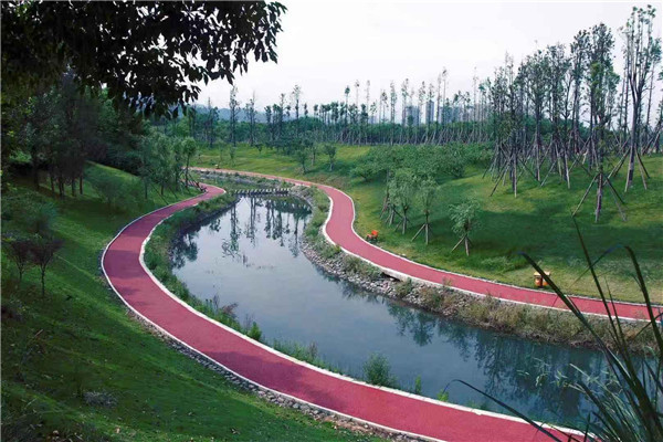 在成都经开区(龙泉驿区)城区,建成后的“航天绿道”与“星光绿道”交汇,形成了一横一竖的城市绿色动脉,支撑起成都经开区(龙泉驿区)中心城区的绿色骨架。