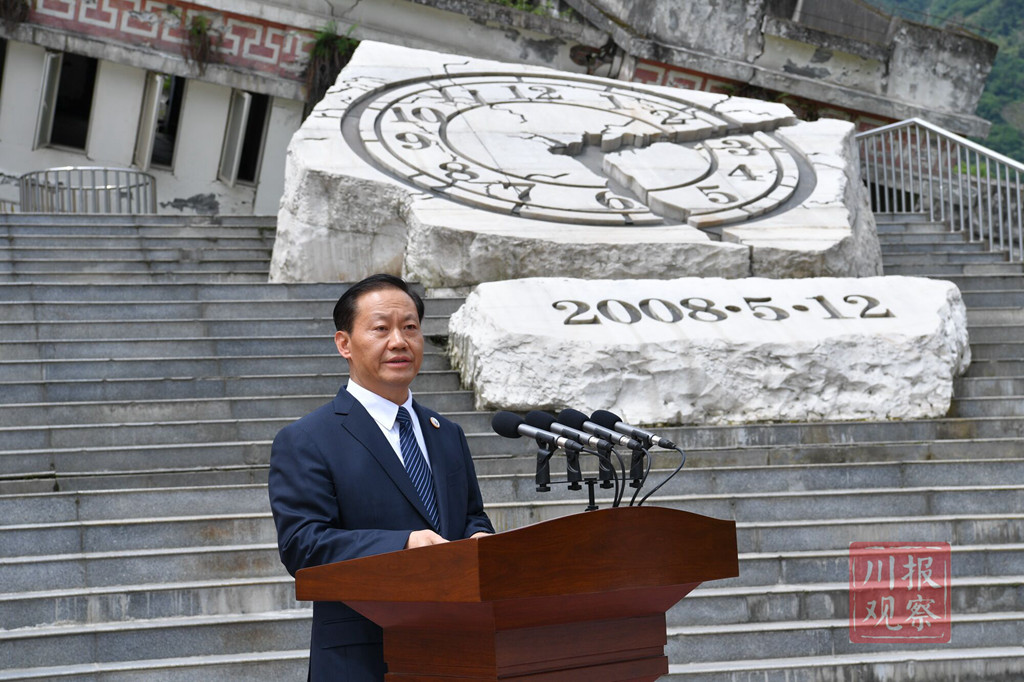 5月12日下午,四川省在汶川县映秀镇举行“5·12”汶川特大地震抗震救灾十周年纪念仪式,深切悼念在地震中不幸罹难的同胞和在抗震救灾中捐躯的英雄,传达学习习近平总书记、李克强总理关于防灾减灾重要指示批示,要求全省上下继续弘扬伟大抗震救灾精神,把对党、对祖国、对全国人民的感恩之情转化为做好各项工作的实际行动,奋力推动治蜀兴川再上新台阶。