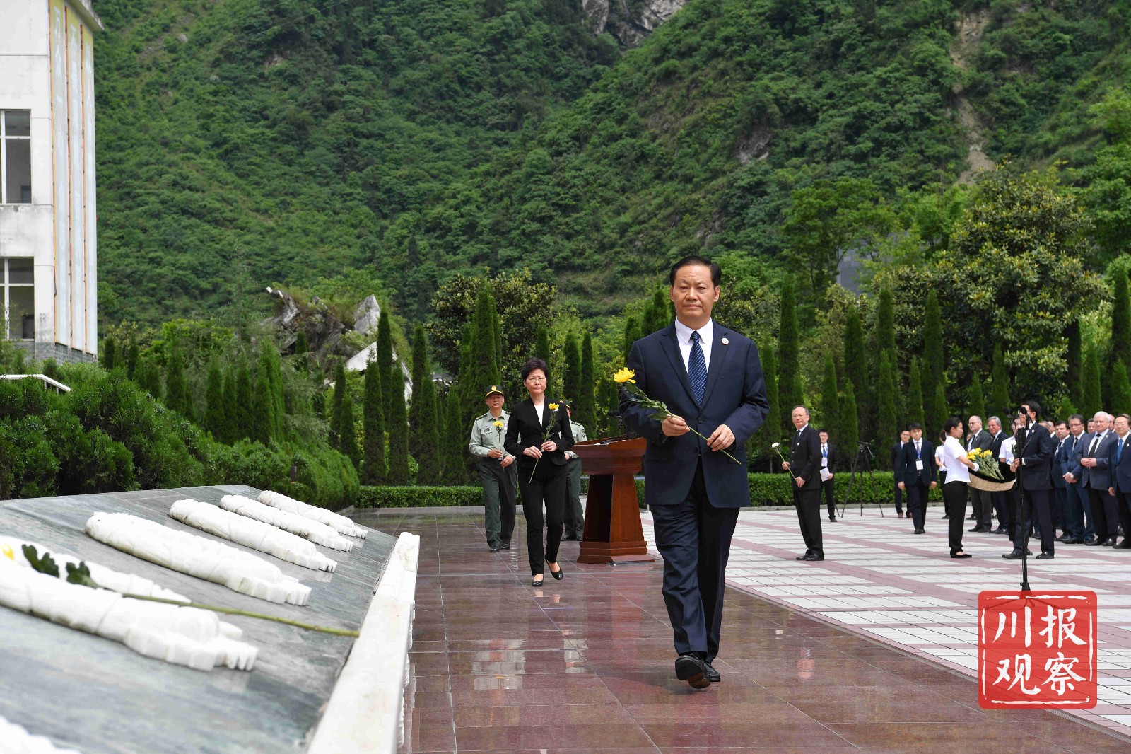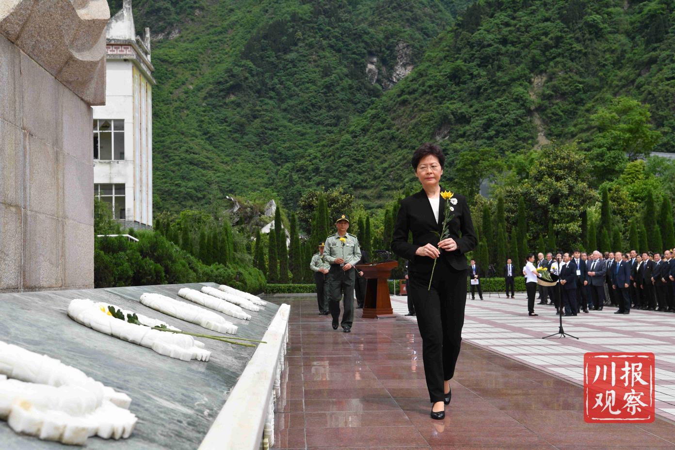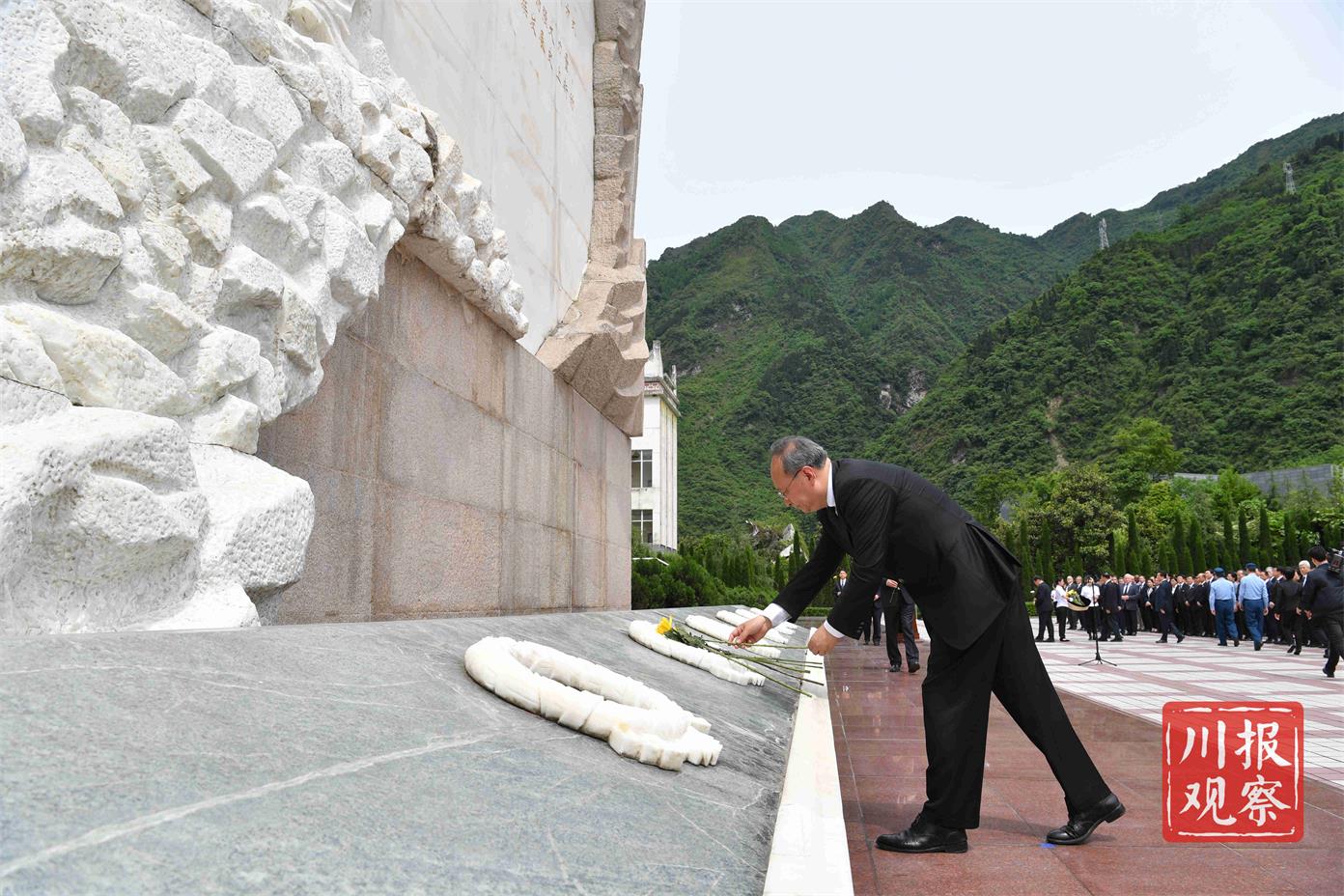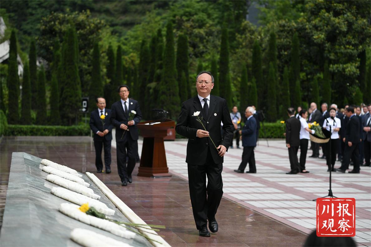 中央国家有关部委领导,香港特别行政区政府代表团、澳门特别行政区代表团,18个对口援建省市领导,西部战区、西部战区空军、陆军第77集团军、省军区、武警四川省总队、武警警官学院领导,俄罗斯、越南、塔吉克斯坦、尼泊尔、加拿大、塞内加尔、西班牙、冰岛等国驻华大使,部分外国驻蓉、驻渝总领事馆总领事,省委、省人大常委会、省政府、省政协领导,灾区各界群众代表,参加纪念仪式和参观活动。