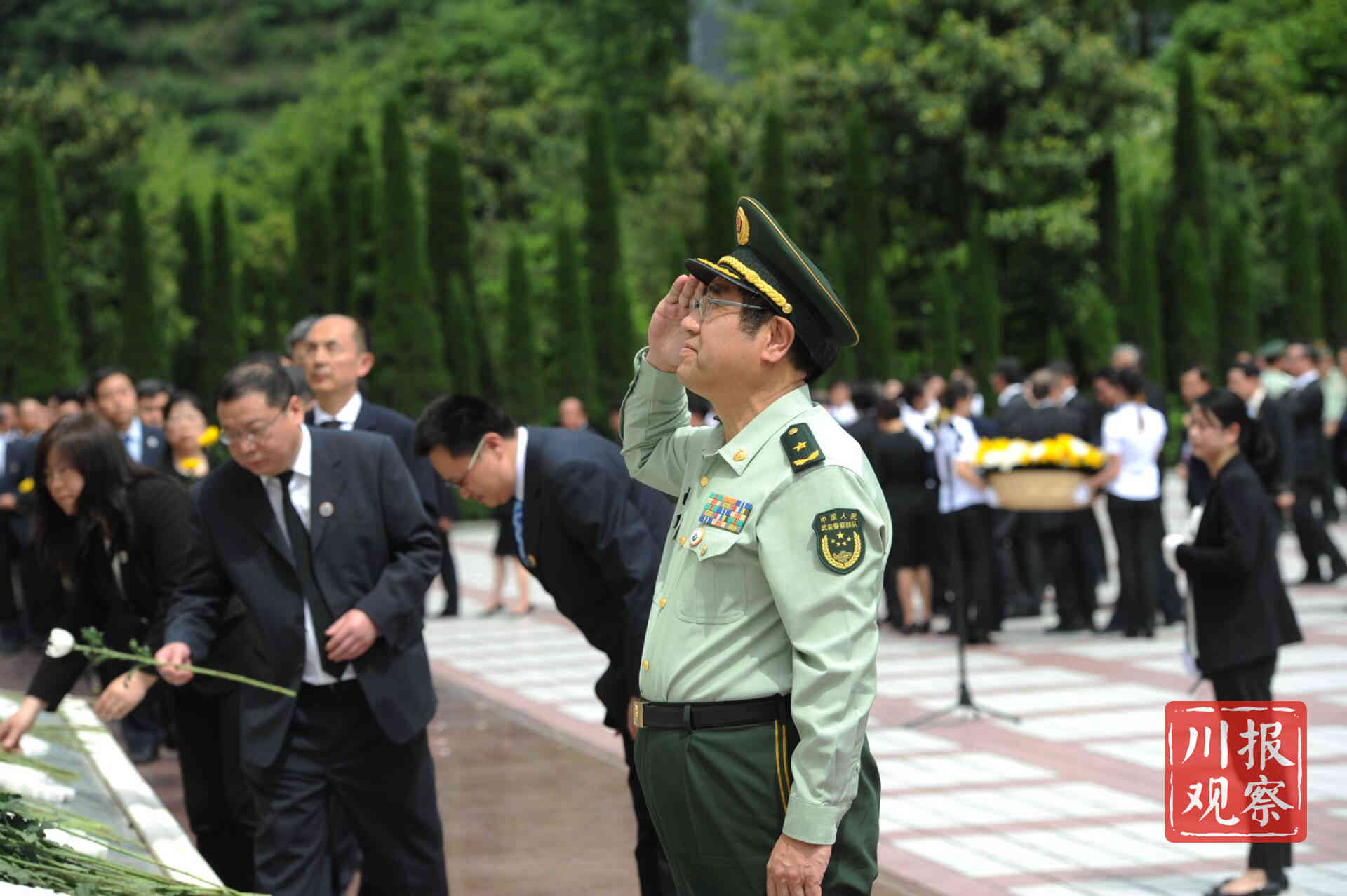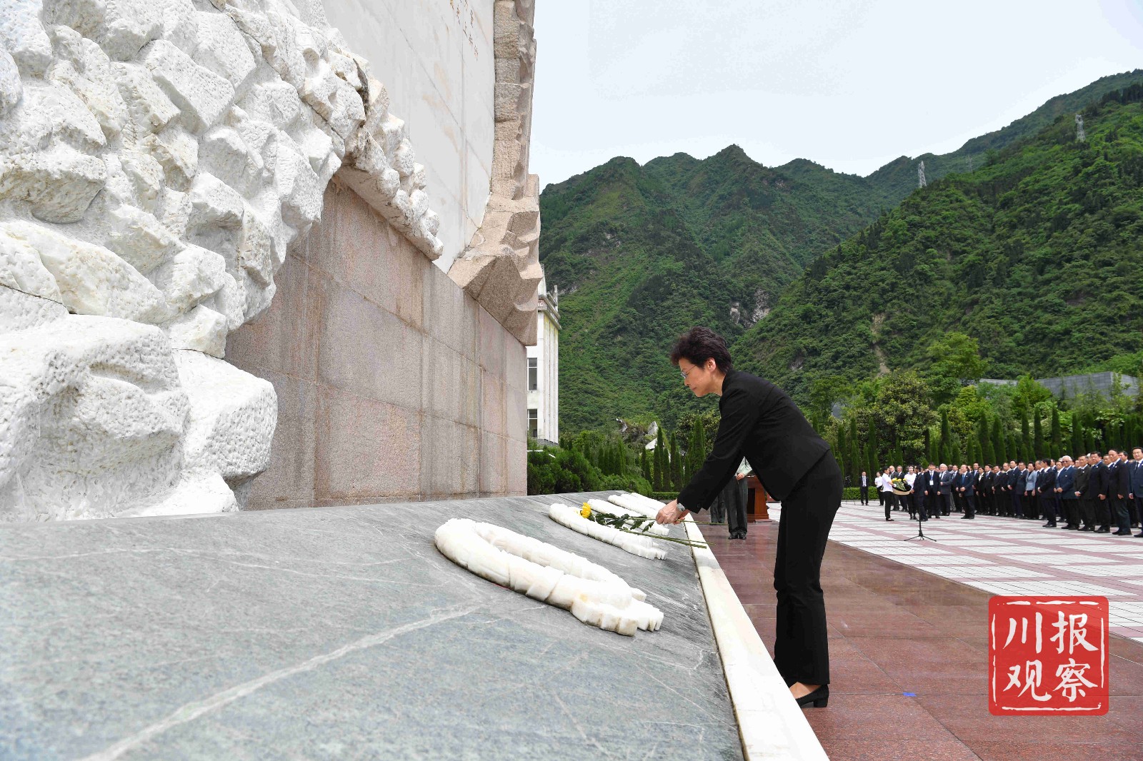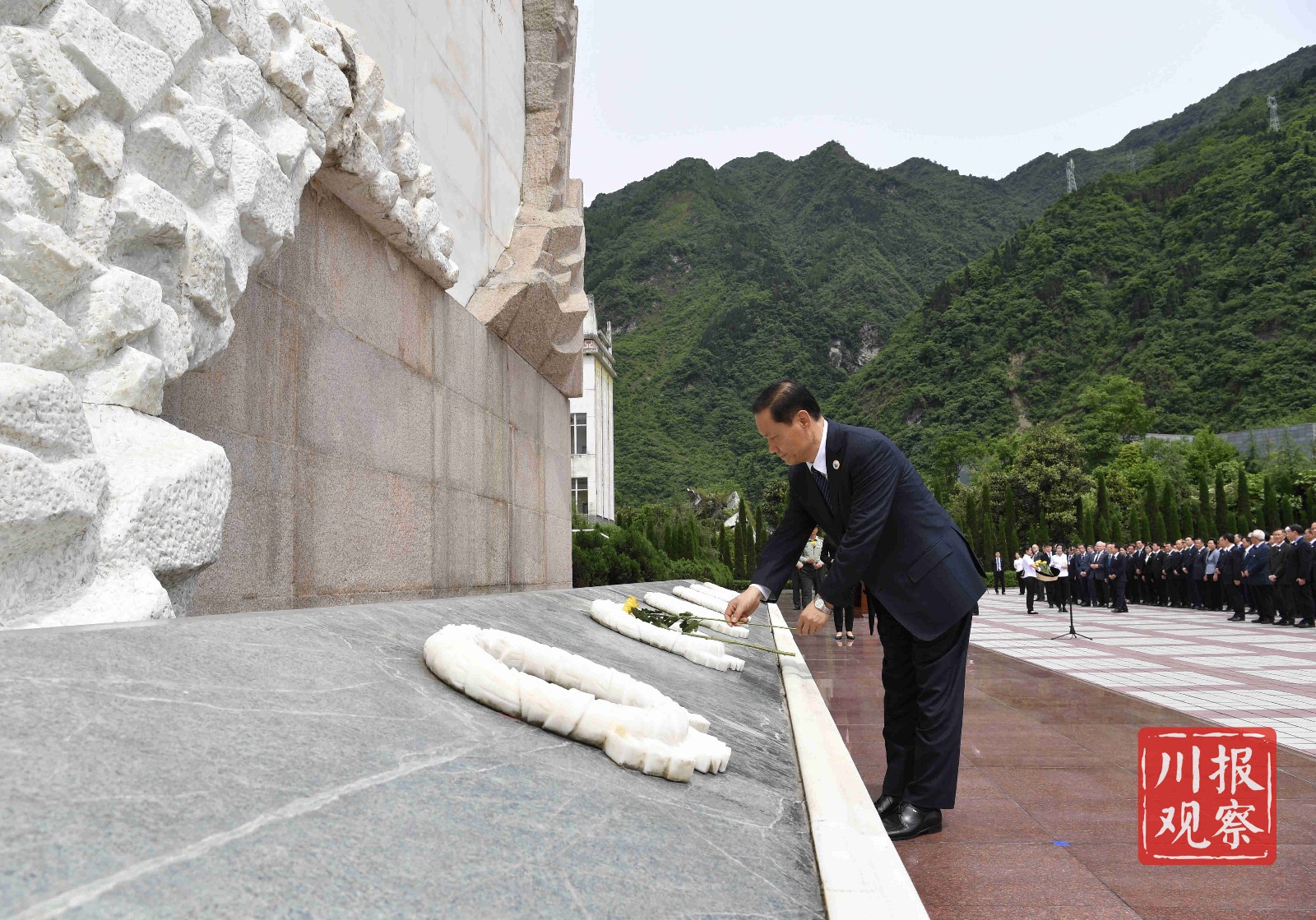 中央国家有关部委领导,香港特别行政区政府代表团、澳门特别行政区代表团,18个对口援建省市领导,西部战区、西部战区空军、陆军第77集团军、省军区、武警四川省总队、武警警官学院领导,俄罗斯、越南、塔吉克斯坦、尼泊尔、加拿大、塞内加尔、西班牙、冰岛等国驻华大使,部分外国驻蓉、驻渝总领事馆总领事,省委、省人大常委会、省政府、省政协领导,灾区各界群众代表,参加纪念仪式和参观活动。