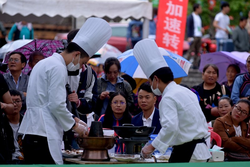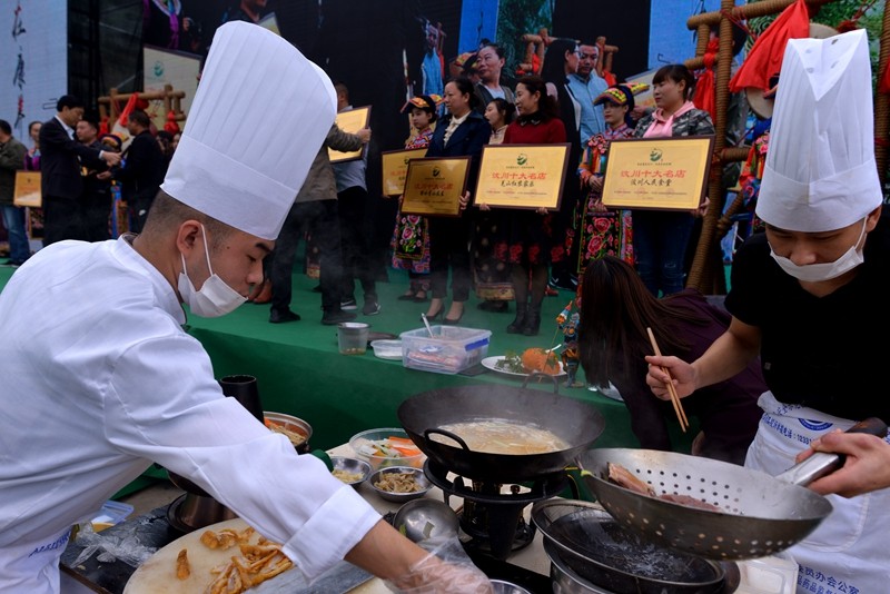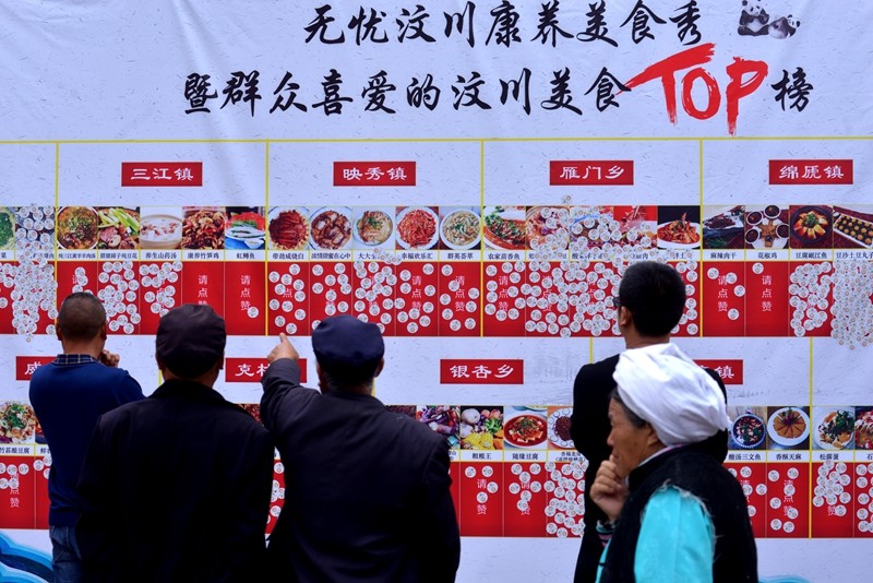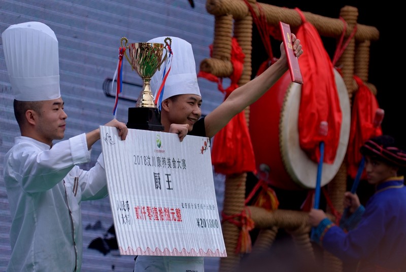 9月27日,作为2018四川大熊猫节的主题活动之一,大熊猫康养美食节更是精彩纷呈。在寻找汶川(卧龙)名菜、汶川(卧龙)美食名店、汶川(卧龙)厨王活动中,汶川县各乡镇酒店、农家乐、餐馆的大厨们积极参与,评选出了十大汶川特色美食、十大特色美食名店,观众和游客还现场目睹大厨们的“厨王”比拼,推出了三种美食套餐(康养美食、藏羌美食、山珍美食)。