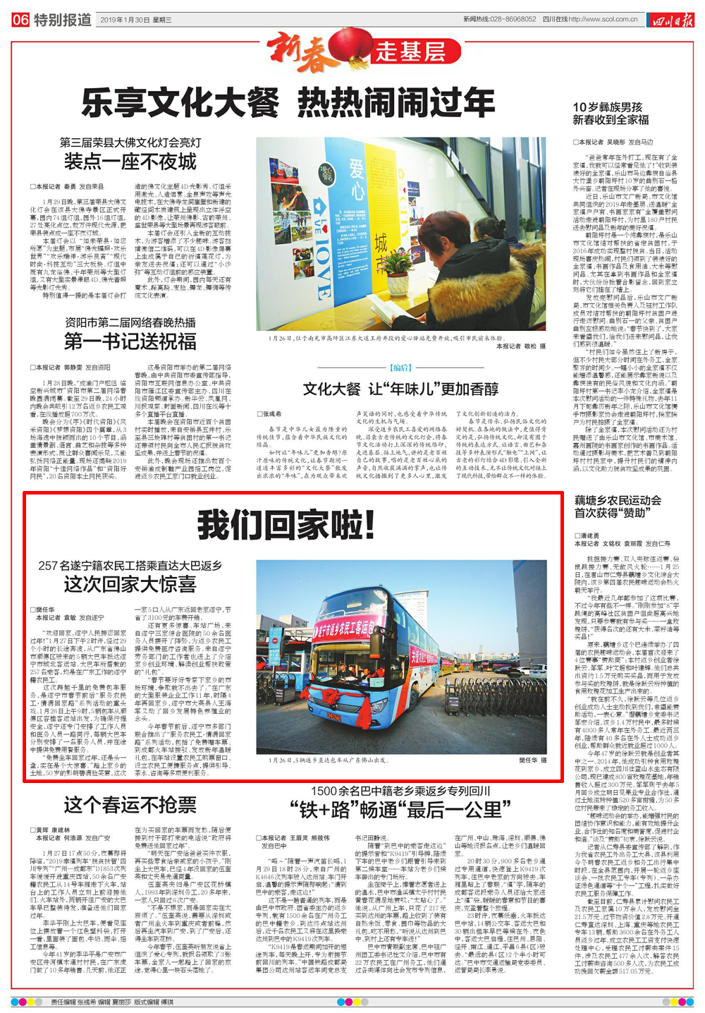 这份冬日里的温暖,值得记录。1月中旬开始,川报集团遂宁全媒体中心全面启动“遂宁关心关爱农民工”主题报道,在《四川日报》和《川报观察》客户端推出多篇生动鲜活的新闻报道。现将近期部分稿件分类归纳,以共同分享返乡团聚时的喜悦,真切感受返乡创业的激情,集中呈现遂宁做好农民工工作的思考与行动。