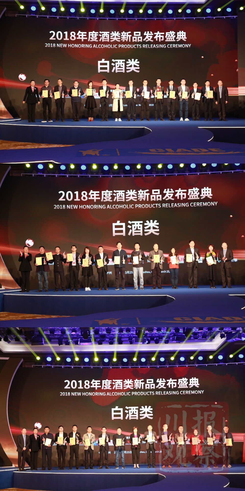 3月25日上午9点,2018年度“青酌奖”酒类新品、酿造料酒评价活动颁奖盛典在泸州举行。作为酒博会专项活动之一,2018年度“青酌奖”酒类新品的评选,采取品酒专家、经销商、消费者和媒体代表共同参与评比的模式,从专业技术角度、市场角度、消费体验角度,同时对酒类产品进行客观、公正的评价,找出真正回归消费、贴近消费、服务消费的酒产品。