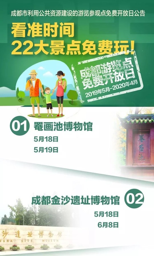 加大惠民力度,促进旅游消费,成都市发改委将该市利用公共资源建设的游览参观点免费开放日情况进行了公告。详细点击>>