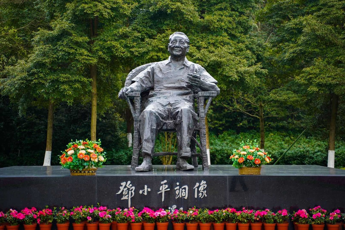 邓小平铜像广场也是很多游客的打卡地,歌曲《春天的故事》在广场回荡,游客们在邓小平铜像前鞠躬,然后合影留恋。在铜像广场的台阶上,坐着一位白发苍苍的老伯,和游客们鞠躬拍照不同,他只是静静地坐着。原来这位老伯姓刘,是协兴本地人,出生在上世纪40年代,如今已经70多岁。他说,他为家乡能够走出邓小平这种伟人感到自豪,只要景区开放,他都会进来逛逛。“改革开放后,日子越过越好,现在吃不完用不完,饮水思源,都要感谢我们的好老乡。”
